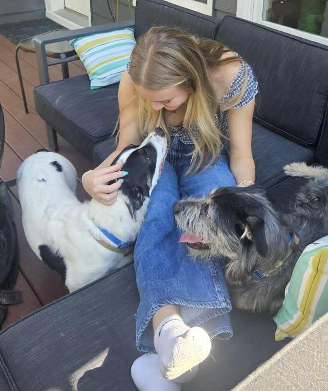 • OTHER DOGS/CATS/KIDS: I, Austin, like to be the follower & I, Dylan, am more the leader in our friendship. We have attempted to be separated but we thrive when we’re together, so we need to be adopted together. If you’re looking for 2 lovely dogs, perhaps we could be the ones. We’ve met other dogs around our size & done well with them including the dogs in our foster home, so let’s meet. / We do chase the cat in our foster home, so ask about that. / We’ve met kids at Mostly Mutts, & were nervous but interested, so think we would do best living with older, mature kids who are 15+ or perhaps younger (10+) kids who have calm natures. Let’s meet!